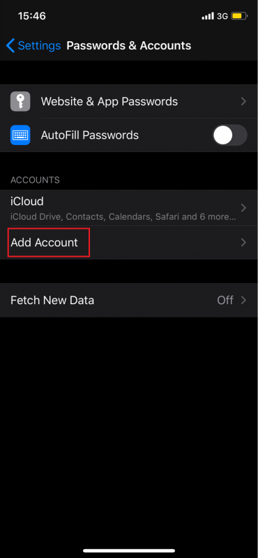 Bước 2 : Tiếp tục vào mục Passwords & Accounts.