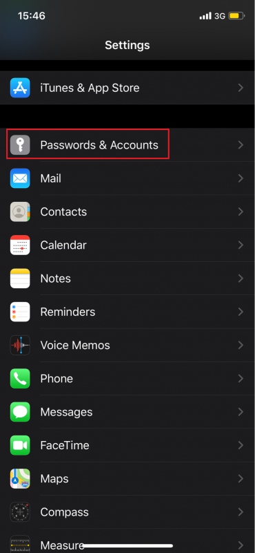 Bước 2 : Tiếp tục vào mục Passwords & Accounts.